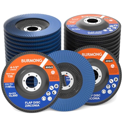 BURMONG 30-Pack 4-1/2" Flap Discs for Angle Grinder - 40/60 Grit T29 Zirconia Abrasive Grinding & Sanding Discs