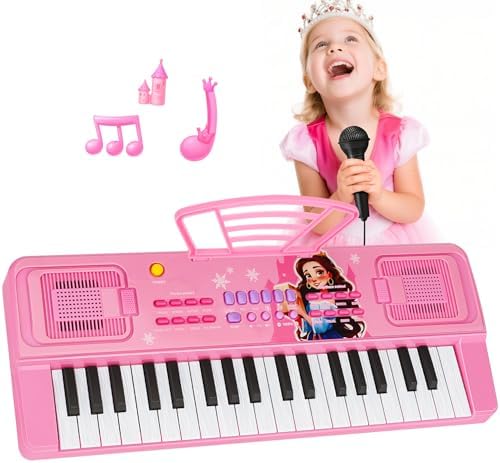 Upgraded 37 Keys Kids Piano Keyboard with Mini Microphone Music Stand – Portable Musical Toys for Toddlers Ages 3 4 5 6 Girls Birthday Gift - Pink