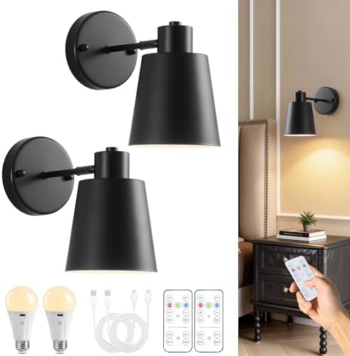 Black Battery Operated Wall Sconces Set of Two with Remote