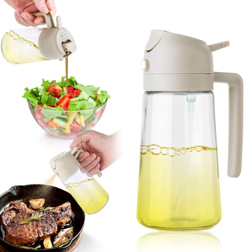 2 in 1 Oil Sprayer and Oil Dispenser for Cooking 16 floz Olive Oil Dispenser Bottle for Kitchen -Salad