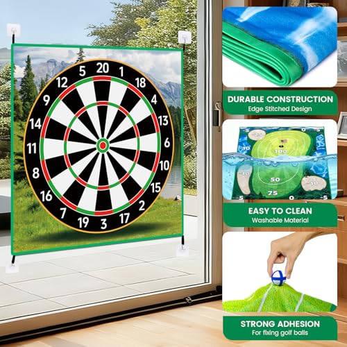 Golf Chipping Game 70"x70" Double Sided Golf Game Practice Mat Kits with 20 Sticky Balls