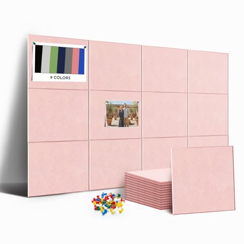 MISSDAY Pink Acoustic Wall Panel Felt Bulletin Board 48" x 36" Cork Board for Wall