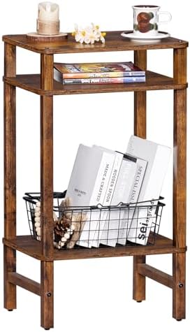 Side Table End Table Tall Night Stand 3-Tier for Living Room Bedroom Bathroom Office Furniture Brown
