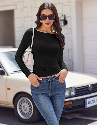 Ekouaer Women's Boat Neck Tops 3 Packs Long Sleeve Shirts Ruched Fall Fashion 2025 Outfits Basic Thermal Underscrubs