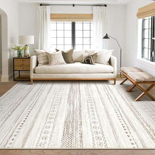 Area Rug Living Room Rugs - 5x7 Washable Boho Farmhouse Bohemian Neutral Large Rug Moroccan Geometric Soft No Slip Indoor Rug Thin Floor Carpet for Bedroom Under Dining Table Home Office - Brown