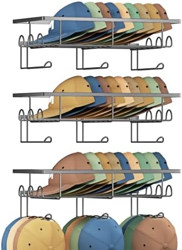3 Packs Wall Hat Organizers with Multiple Hooks