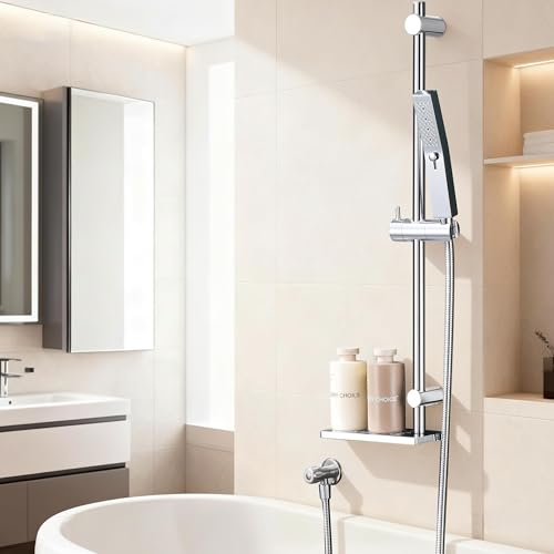 G-Promise 27.6 Inch Metal Shower Slide Bar with Adjustable Holder and Stainless Steel Tray