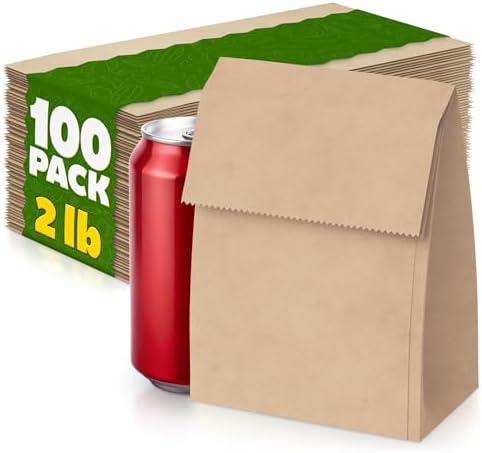 Set of 100 Small Brown Paper Bags - Sturdy Brown Lunch Bags for Snacks