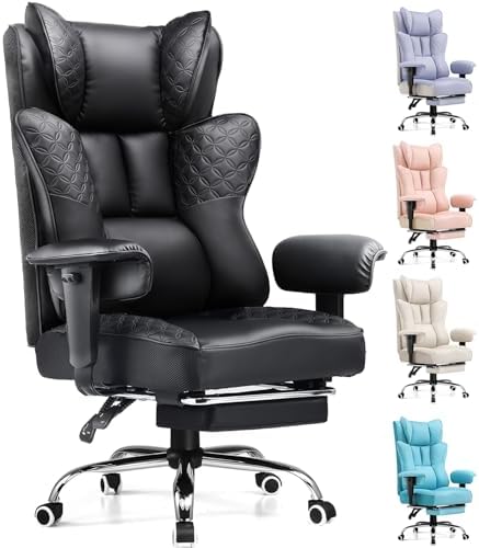 GTPLAYER Big and Tall Office Chair 400LBS Wide Ergonomic Gaming Chair with Deluxe Embossing Designed Leather with Foot Rest