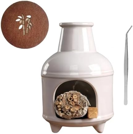 Handmade White Ceramic Palo Santo Holder Burner & Sage Holder - Mini Tabletop Chiminea Burner Tray with Ash Catcher