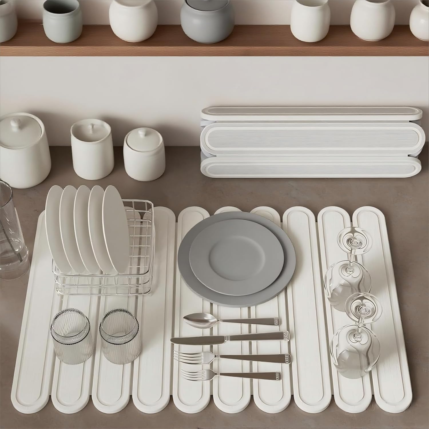 Stone Drying Mat for Kitchen Counter, 2025 Newly Upgraded Diatomaceous Earth Bath Mat & Dish Drying Mat - 23.6"x15.3" Foldable Anti-Slip Mat, Heat Resistant for Dishes Pet Bowls Plants
