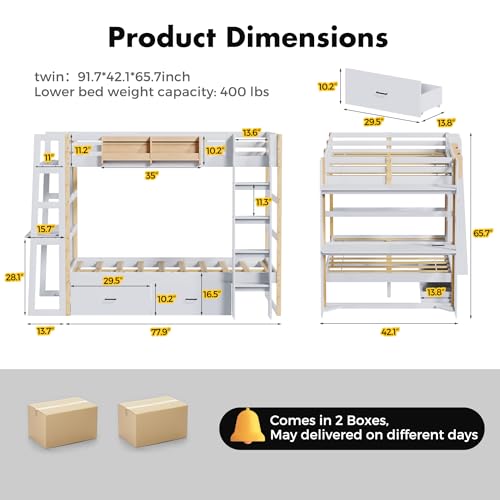 Wooden Twin Over Twin Bunk Bed with Desk