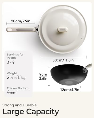 Carbon Steel Wok Pan - 11.8 Inch Pre-Seasoned Flat Bottom Chinese Woks & Stir Fry Pans with Lid