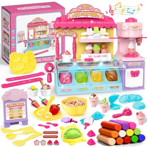 deAO Ice Cream Toys Clay Set Pretend Play Food Store for Kids 89 PCS Ice Cream Shop Playset with Ice Cream Maker