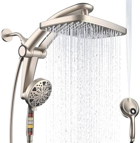 Rain Shower Head with Handheld High Pressure rainfall Shower Heads with Handheld Spray Combo Adjustable one-piece stand daul shower head Built-in Magnetic Docking and Power Jets
