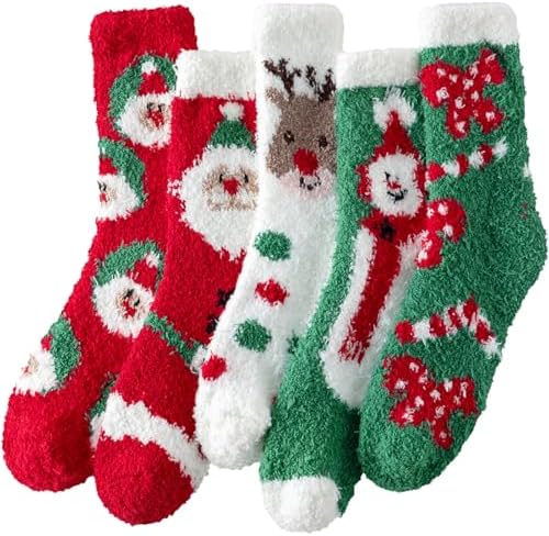Trifabricy Fuzzy Socks - 5 Pairs Cute Chirstmas Fuzzy Socks for Women Gifts