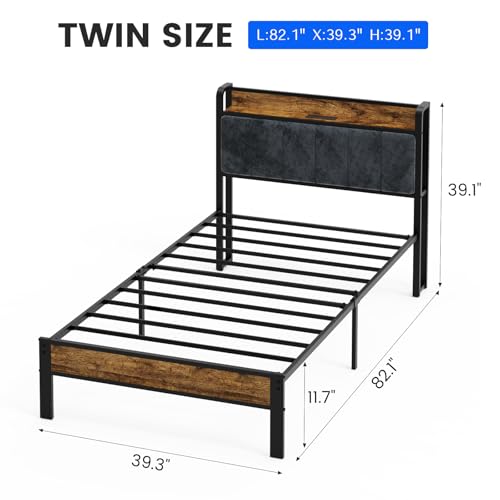 ALBERTO Twin Bed Frame with Charging Station and LED Lights
