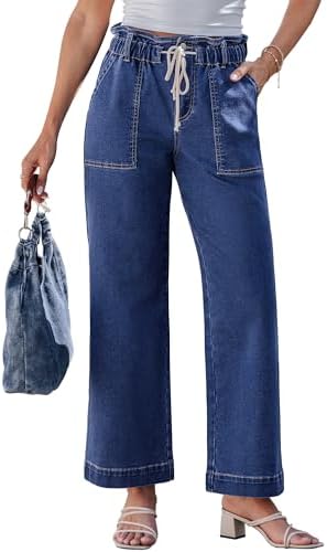 luvamia Wide Leg Jeans for Women Trendy High Waisted Elastic Waist Paperbag Drawstring Stretchy Denim Pants Trouser Jeans