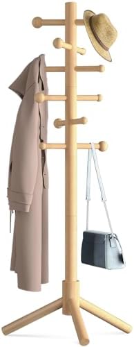 Wooden Coat Rack Freestanding with 12 Hooks 3 Adjustable Heights,Standing Coat Rack Tree for Hat and Coat Rack for Small Spaces Entryway