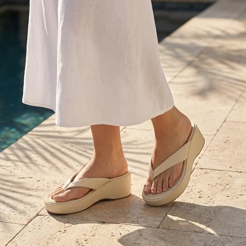 Tilocow Platform Sandals for Women Round toe Wedges Woman Comfort Slides Ladies Thong Style Flip Flops