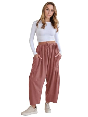 Womens Linen Wide Leg Palazzo Pants Casual Loose Elastic Drawstring Flowy Pant 2025 Travel Baggy Pocket Harem Pants