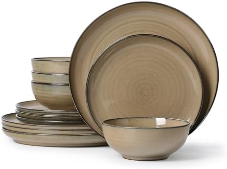 Ceramic Dinnerware 12 Pieces Dinnerware Sets Cereal Bowls Reactive Change Glaze Dish Sets