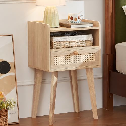 Lerliuo Rattan Night Stand with Drawer Open Shelf